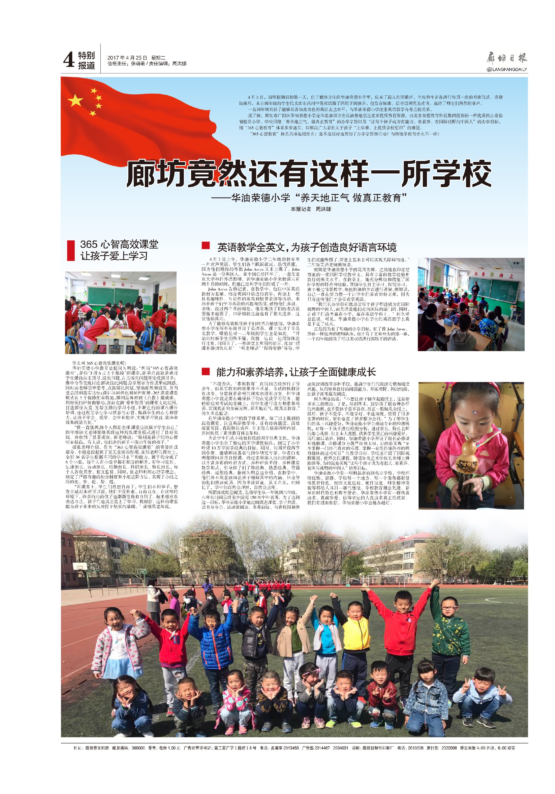 华油荣德小学因为办学有特色,注重素质教育与应试教育的完美结合,管理细致,得到了媒体的高度关注,廊坊日报社多次报道,廊坊电视台多次对学校进行报道。