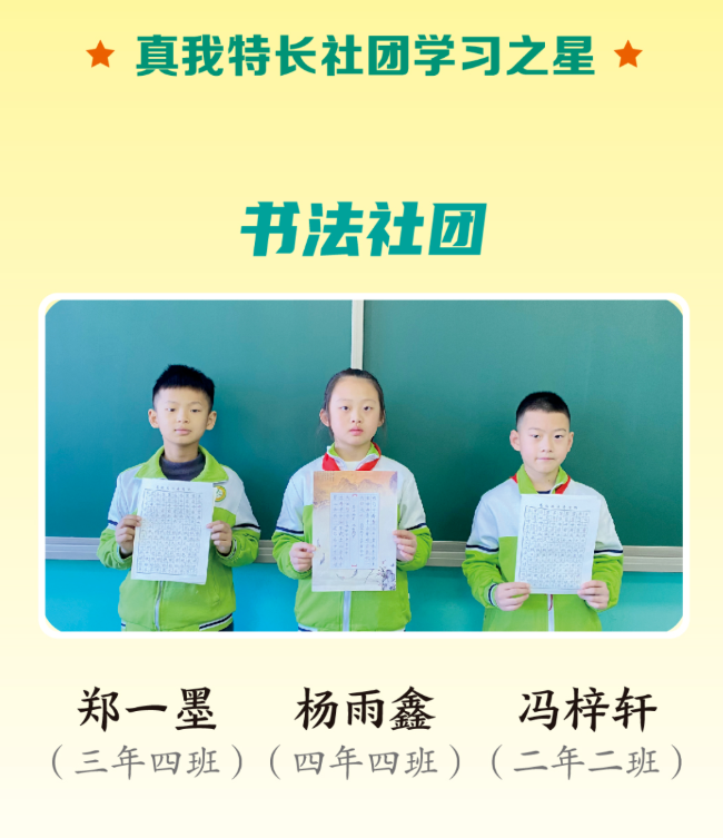 我校丰富的社团课程尽力让每位学生发展一项个人兴趣爱好,因为洒下了拼搏的汗水,所以才有今天的一骑绝尘。篮球之星在篮球场上躲避围堵、精准投篮,足球之星在足球门前带球自如,轻松射门;网球之星在网球场地上,挥拍稳健,脚步灵活;古筝之星指尖流淌出动听的旋律,架子鼓之星鼓槌击打出铿锵的节奏,绘画之星笔下的绘画形象栩栩如生……获得2021-2022学年度第一学期“真我特长社团学习之星”的学生是:
